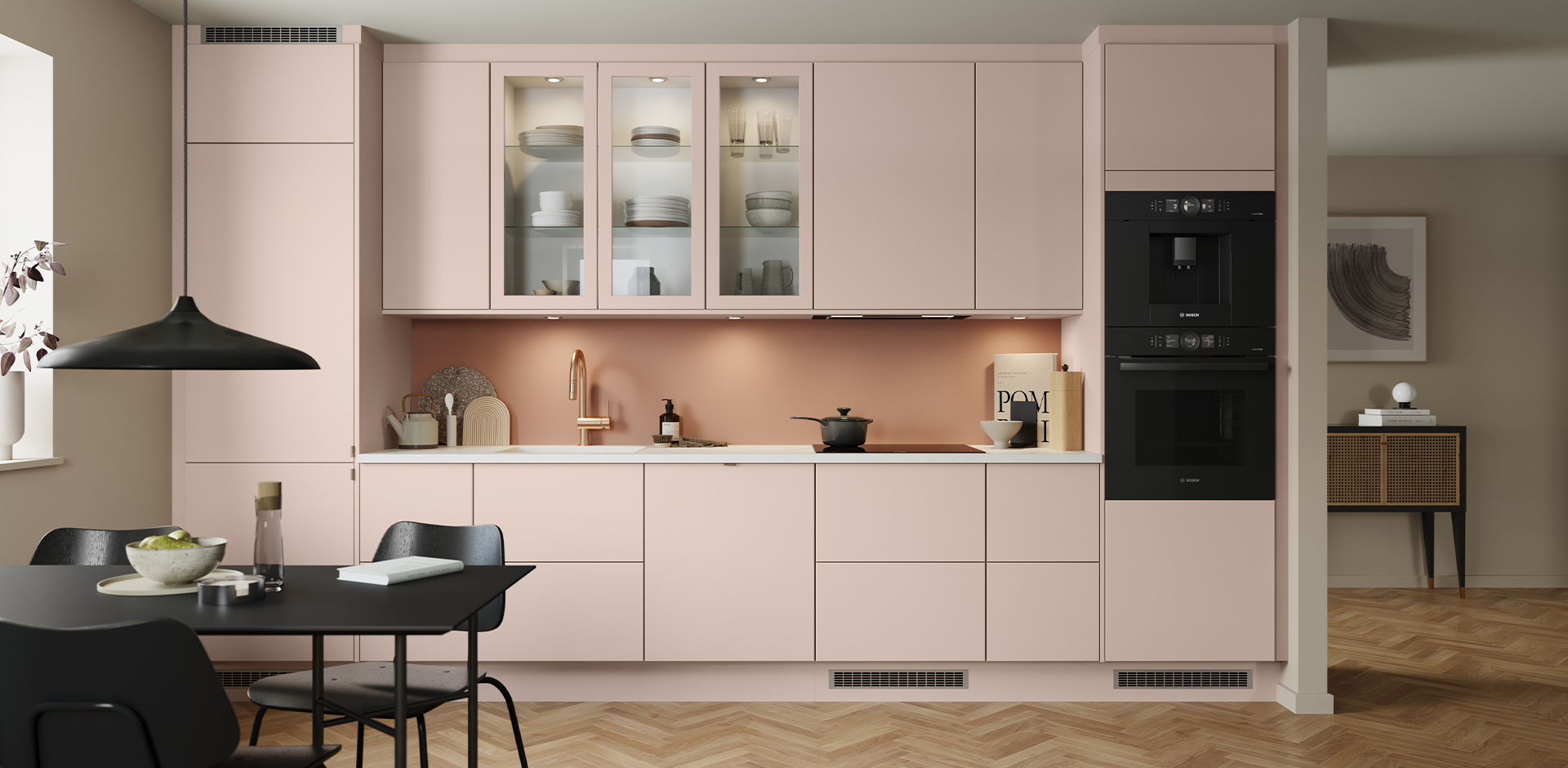 Precis som handtag och knoppar kan vara detaljen som får hela designen att gå ihop, kan ett kök utan handtag vara den detalj du behöver för att uppnå minimalism med stort «M». Vårt TipMatic-öppningssystem för NPS-lådor gör att du kan hoppa över handtagen och öppna dina lådor med ett enkelt tryck på framsidan. Utan att förlora komforten med tyst mjukstängning och utan behov av el eller batterier.