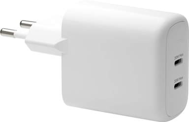 Ladda två enheter samtidigt med Dbramante1928 2x30W USB-C-väggladdare med stöd för snabbladdning. Med GaN-teknik ger denna kompakta laddare effektiv laddning med en maximal effekt på 45W till låg strömförbrukning.Läs mer om produkten