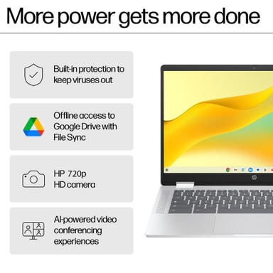 Chromebooks är byggda för enkelhet. Du får det bästa från Google inbyggt, så appar som Docs, Gmail och fler integreras sömlöst. Den startar snabbt och förblir snabb, med lång batteritid som har tillräckligt med kraft för att ta dig genom dagen.* Automatiska uppdateringar körs i bakgrunden, och tack vare inbyggd säkerhet har en Chromebook aldrig drabbats av ett virus.*