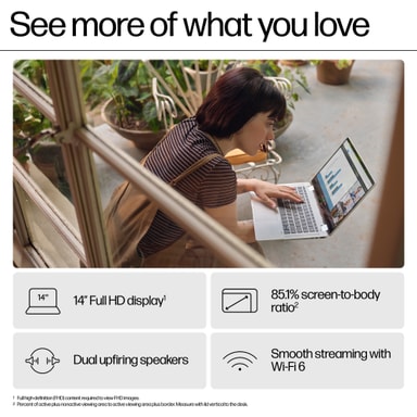 Den 14-tums stora IPS-skärmen ger tydliga och levande bilder, vilket förbättrar din tittarupplevelse oavsett om du arbetar med dokument eller streamar videor.