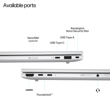 HP EliteBook 8 G1i har en 14" WUXGA-skärm, Intel® Core™ Ultra 5-processor, AI Boost NPU för Copilot AI-funktioner, 16GB DDR5 RAM, 512GB SSD, Wi-Fi 7 och robust säkerhet, perfekt för yrkesverksamma och företag.Läs mer om produkten