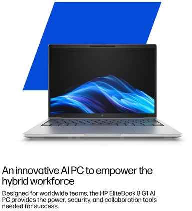 HP EliteBook 8 G1i har en 16" WUXGA-skärm, Intel® Core™ Ultra 5-processor, AI Boost NPU för Microsoft Copilot AI-funktioner, 16GB DDR5 RAM, 512GB SSD, Wi-Fi 7 och robust säkerhet, perfekt för yrkesverksamma och företag.Läs mer om produkten