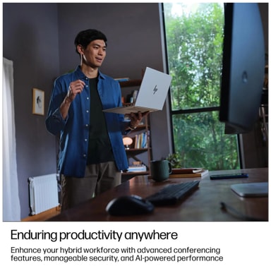 Tillverkad i aluminium och testad enligt MIL-STD-810H-standarder erbjuder denna bärbara dator både stil och hållbarhet. Med en vikt på endast 1,69 kg är den mycket portabel. Det bakgrundsbelysta HP Premium-tangentbordet och precisionstouchpaden förbättrar användarupplevelsen, medan den 5MP IR-integritetskameran stödjer videokonferenser av hög kvalitet och säker ansiktsigenkänning för inloggning.