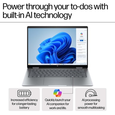 HP Envy X360 2-i-1 förbättrar multitasking och produktivitet med AI-verktyg och AMD Ryzen™ 5 8640HS-processor. Upplev surfplattans fördelar med dess roterande pekskärm.Läs mer om produkten