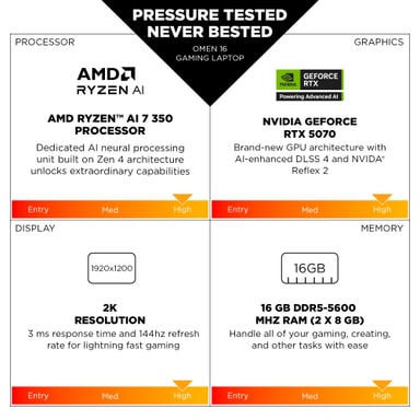 OMEN 16 är utrustad med ett sofistikerat värmehanterings-system som förhindrar överhettning. Detta gör att de kraftfulla komponenterna kan fungera effektivt utan risk för termisk strypning. En IR-värmesensor stödjer ytterligare upprätthållandet av optimala temperaturer.