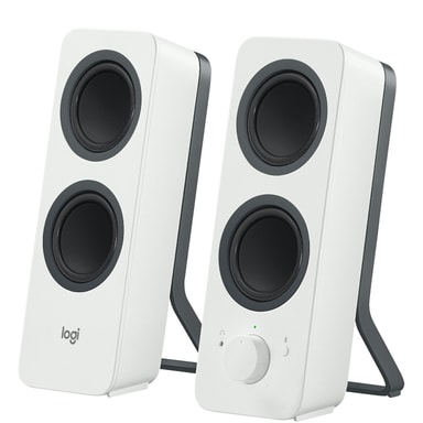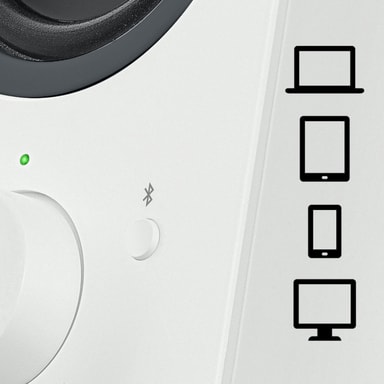 Små och mångsidiga men ändå förvånansvärt kraftfulla. Logitech Z207 Bluetooth högtalare bjuder på en imponerande stereoupplevelse. Två högtalarelement per högtalare ansvarar för mitt- och höga toner. De två andra elementen i varje högtalare tar sig an de låga tonerna, och därför får du ett balanserat ljud. Logitech Easy-Switch låter dig ansluta två Bluetooth-enheter och en enhet via 3,5 mm mini-jack, så du enkelt byter ljudenhet. Den högra högtalaren har alla kontroller på sig, så som Bluetooth-parningsknapp, Av/På-knapp samt en volymkontroll. Här hittar du också hörlursutgången.