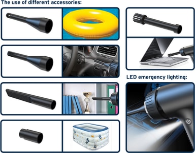 Sandstrøm SDB25 dammblåsare rengör enkelt bilar, golv, soffor, tangentbord och gardiner med mångsidiga munstycken inklusive luftkudde, kortblåsning, tryckluft och borstmunstycke.Läs mer om produkten