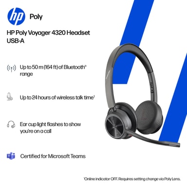 • HP Poly Voyager 4320 MS Teams headset USB-A