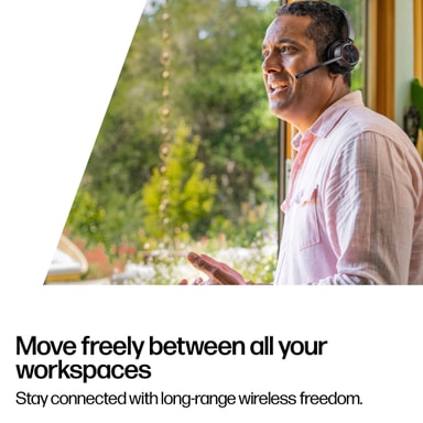 Hörs tydligt med hjälp av HP Poly Voyager 4320 MS Teams headset USB-A. Headsetet erbjuder en trådlös anslutning tack vare Bluetooth och en medföljande USB-adapter, medan mikrofonen har Acoustic Fence-teknik som tar bort bakgrundsljud. Den långa batteritiden gör att du kan slutföra alla dina samtal utan att behöva ladda. Dessutom finns inbyggda volym- och samtalskontroller för snabb och enkel användning.