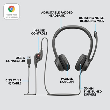 Njut av digitalt ljud från detta USB-headset från Logitech. Ljudet överförs digitalt via USB och du behöver inget ljudkort för att det ska fungera. Musik, samtal, film strömmas direkt från källan utan förvrängning.