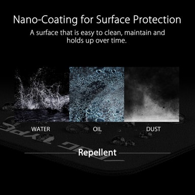 The Asus ROG Hone Ace XXL musmatta ger en perfekt balans mellan smidigt glid och motstånd. Den har halkskyddad gummibotten och stöter bort vatten, olja och damm.