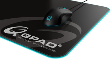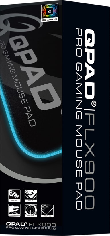 Få full kontroll och mjuk glidning av din mus på QPad FLX900 RGB-musmattan. Den anpassningsbara RGB-belysningen med två zoner låter dig välja din favoritfärg och matcha den med resten av din setup. Den slitstarka sömmen längs kanterna förbättrar inte bara hållbarheten, utan ser också till att dina handleder alltid är bekväma. Och den halkfria gummibotten håller musmattan stadigt på plats.