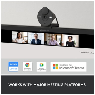 Leverera din presentation kristallklart samtidigt som du använder Logitech Brio 300 webbkamera och dess högupplösta 1080p videoutgång. Se naturlig ut hela tiden tack vare den automatiska ljuskorrigeringen och bli hörd med den brusreducerande mikrofonen. Sekretesslutaren ser till att du alltid är säker.