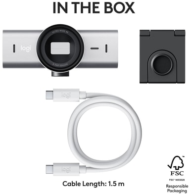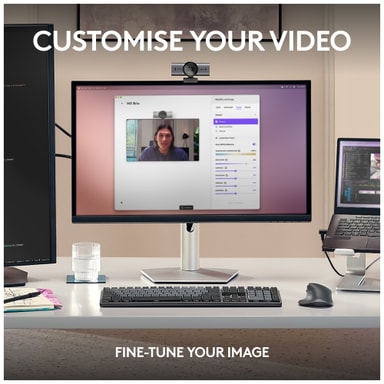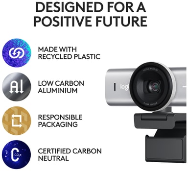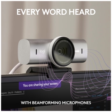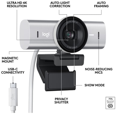Logitech MX Brio webbkamera låter dig visa upp ditt snyggaste jag, tack vare den kristallklara 4K-upplösningen. Samarbeta mer organiskt och förbättra ditt arbetsflöde med Visa-läget. Behåll absolut integritet med den manuella sekretessluckan.