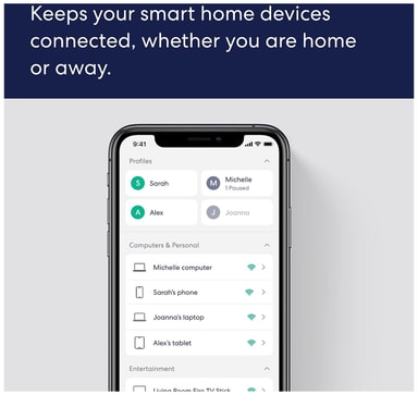 Hanterar nätverkstrafiken intelligent för att minimera avbrott och eliminera döda zoner, vilket säkerställer en pålitlig internetanslutning i hela hemmet.