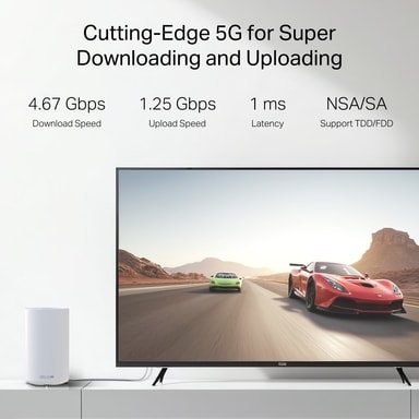 Upplev höga internethastigheter med Tri-Band Wi-Fi 7, som ökar nätverksprestandan upp till 2882 Mbps på både 6 GHz- och 5 GHz-banden, och 688 Mbps på 2,4 GHz-bandet.