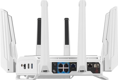 Asus ROG AS GT-BE19000 AI WF7/BE19000 mesh-router är designad för höga hastigheter och smidig gaming. Den har tri-band Wi-Fi 7 för upp till 19 Gbps. Med 7 LAN-portar och AI-speloptimering erbjuder den en stabil anslutning.Läs mer om produkten
