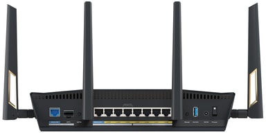 Asus RT-BE88U WiFi 7-router ger en snabb, pålitlig och stabil anslutning för alla dina enheter med upp till 9 enheter anslutna via LAN. Dual band-routern täcker ett stort område tack vare de 4 externa antennerna, och med driftshastigheter på upp till 7200 Mbps är oavbruten gaming, 4K-streaming eller film inga problem. Du får både snabb och säker anslutning med AiProtection nätverkssäkerhet.