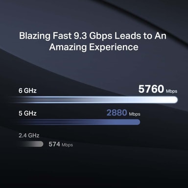 Upplev blixtsnabbt internet med 9,3 Gbps Tri-Band-hastigheter, vilket möjliggör streaming och spel utan avbrott.
