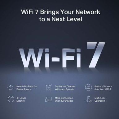 Utrustad med de senaste Wi-Fi 7-funktionerna, inklusive 320 MHz-kanaler och 4K-QAM, ger denna router exceptionell nätverksprestanda och tillförlitlighet.