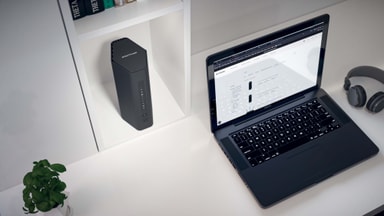 Netgear Nighthawk RS200 Wi-Fi 7 BE6500-router levererar hastigheter på upp till 6,5 Gbps, täcker 185 m² för upp till 80 enheter, med dubbelbandsanslutning och robust säkerhet med NETGEAR Armor.Läs mer om produkten