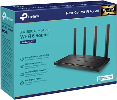 Upplev pålitlig och stabil internetanslutning tack vare TP-Link Archer AX12 Router. Med driftshastigheter på upp till 1500 Mbps kan du titta på högupplösta videor, spela onlinespel och surfa på webben utan några fördröjningar.Läs mer om produkten