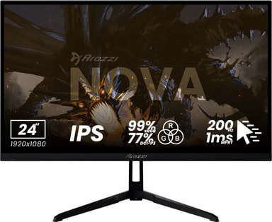 Arozzi Nova FHD | IPS | 200 Hz | 24" gamingskärm har 1 ms svarstid, 200Hz uppdateringsfrekvens, stöd för Adaptive Sync tillsammans med en 24" FHD IPS-panel. Den är skapad för både gaming och arbete.Läs mer om produkten