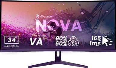 Arozzi Nova UWQHD | VA | 165 Hz | 34" gamingskärm har 1 ms svarstid, 165 Hz uppdateringsfrekvens, stöd för Adaptive Sync tillsammans med en 34" UWQHD VA-panel.Läs mer om produkten