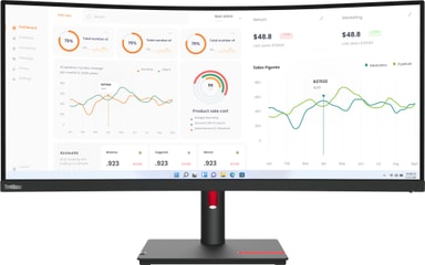 Gör dig redo att ta din effektivitet till nästa nivå med den uppslukande, krökta 34"-bildskärmen ThinkVision T34w-30, som har en WQHD-upplösning på 3 440 × 1 440 och NearEdgeless-design på tre av sina sidor för att du inte ska missa en enda detalj. Bildförhållandet 21:9 ger en panoramaupplevelse och 1500R-krökningen ger ett konsekvent avstånd mellan ögonen och skärmen. Tack vare den stora bildytan och krökningen går det lätt att visa upp även de små detaljerna för teamet, plus att det förbättrar ditt fokus och din produktivitet. Den här bildskärmen är en fröjd för ögonen tack vare de naturliga, livfulla färger som färgspektrumet på 99 % sRGB ger. Med sin Natural Low Blue Light-teknik skyddar den även din syn mot skadligt blått ljus utan att färgerna förvrids.