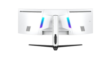 Känn dig helt uppslukad, inte bara visuellt. Den 57” breda Dual UHD-upplösningen motsvarar två UHD-skärmar och återger otroligt skarpa och detaljerade bilder.