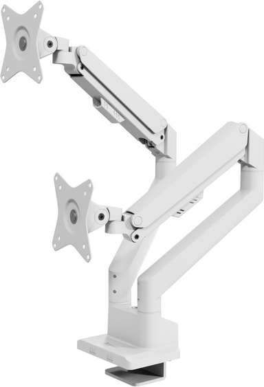 Arozzi Alzare Neo Duo monitorarm stödjer dubbla skärmar upp till 34" med gasfjädersjustering, 360° rotation och snabbkopplande VESA-fästen.Läs mer om produkten