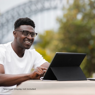Portabla Espresso Case 15 diplaystativ, kompatibelt med 15" espresso-skärmar, erbjuder portabilitet skydd med ett magnetiskt mikrofiberfodral som fungerar som ett stativ.Läs mer om produkten