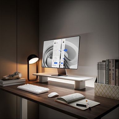 Detta monitorställ är utformat för att förbättra din hållning och minska belastningen genom att höja skärmen till en ergonomisk höjd. Oavsett om du arbetar, spelar eller skapar, förbättrar den komforten och produktiviteten samtidigt som den behåller ett elegant, modernt utseende.