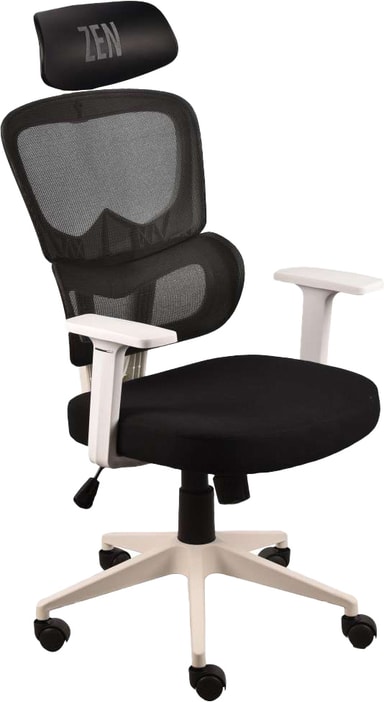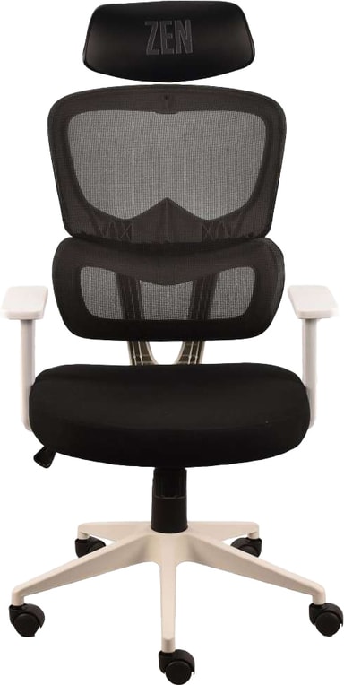 Uppgradera din arbetsyta med Zen 600 kontorsstol. Denna stol kombinerar överlägsen komfort med snygg design för att hålla dig produktiv och fokuserad hela dagen. Det andningsbara ryggstödet i mesh ger ländryggsstöd för att främja korrekt ryggradsjustering, vilket hjälper till att minska nedre ryggsmärta och trötthet. Ett justerbart nackstöd gör att du kan anpassa passformen för maximalt nackstöd. Med sin estetiska och svart/vita färg ser den här stolen bra ut i hemmet/kontoret. Håll din kropp korrekt inriktad och stödd i total Zen-liknande komfort med sin ergonomiska design.