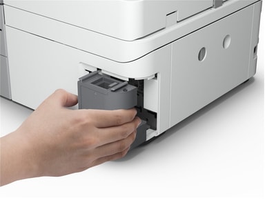 EcoTank erbjuder problemfri utskrift i hemmet och på kontoret – de påfyllningsbara bläckbehållarna med extremt hög kapacitet ger en spillfri påfyllning och tillåter endast att korrekt färg fylls på i motsvarande behållare. Bläcknivådisplayen på framsidan innebär att det är enkelt att se när det är dags för påfyllning och den stilrena blå belysningen ovanpå bläckbehållarens lock innebär dessutom att du kan övervaka skrivarens status med ett snabbt ögonkast.