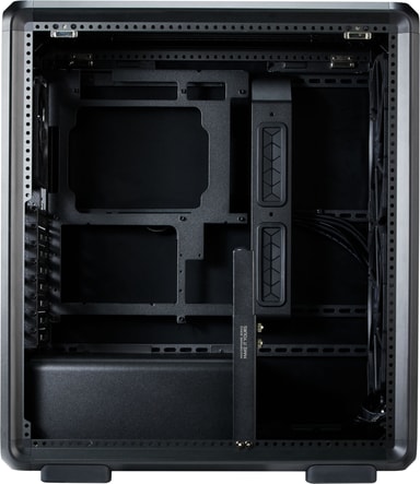 Konstruerat för högpresterande kylning levereras MasterFrame 500 Mesh med två förinstallerade 200 mm fläktar fram och en 120 mm fläkt bak för optimalt luftflöde. Meshpanelerna maximerar ventilationen, medan stödet för vätskekylning sträcker sig över framsida, ovansida, baksida och sida för radiatorer upp till 420 mm. Chassit är utformat för att hantera krävande termiska belastningar och säkerställer att dina komponenter hålls svala under press.