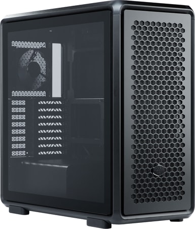 MasterFrame 500 Mesh har en djärv, öppen estetik tillverkad i aluminium för styrka och lätt hållbarhet. Sidopanelen i härdat glas visar upp dina komponenter, medan den modulära layouten möjliggör enkel anpassning och uppgraderingar. Med verktygsfri panelborttagning och ett inbyggt stöd för grafikkort är chassit utformat för både stil och praktisk funktion.