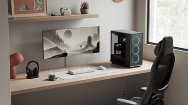 Konstruerad med en främre meshpanel som främjar exceptionellt luftflöde, och tre medföljande 120mm-fläktar, designade med Liquid Crystal Polymer-blad och Fluid Dynamic Bearing-teknik, säkerställer detta chassi en kraftfull men tyst kylningsprestanda. Denna genomtänkta design möjliggör naturlig luftcirkulation och upprätthåller optimala temperaturer för din hårdvara.