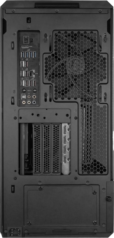 Levereras med 2x170mm + 1x140mm + 2x120mm förinstallerade fläktar. Stöd för upp till 10 fläktar och en 360mm radiator i toppen.