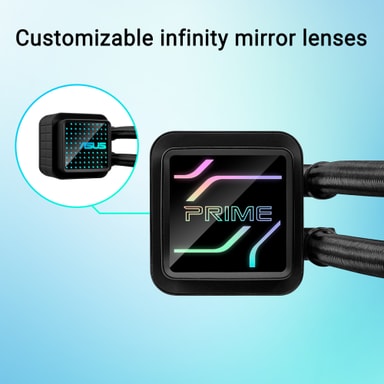 Vattenblocket på kylaren har anpassningsbara infinity-spegellinser, vilket gör att användarna kan anpassa utseendet på sin PC-konstruktion. De reflekterande ytorna och skiktade designen skapar fängslande visuellt djup när ARGB-belysningen är aktiverad,