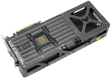 ASUS TUF Gaming GeForce RTX 5090 har ett sofistikerat kylsystem som inkluderar en 3,6-slots design med en ångkammare och en massiv kylfläns med 12 värmepipor. Denna uppsättning är optimerad för luftflöde och använder tre moturs roterande Axial-tech-fläktar för att säkerställa effektiv värmeavledning. Den fasförändrande GPU-termiska dynan förbättrar ytterligare den termiska prestandan, överlever traditionell termisk pasta och bibehåller optimala temperaturer under hög belastning.