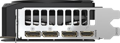 Grafikkortet inkluderar tre DisplayPort-anslutningar och en HDMI-anslutning, vilket ger flexibilitet för flerskärmsuppsättningar. Denna funktion är idealisk för användare som kräver omfattande skärmyta. Mångfalden av portar säkerställer kompatibilitet med ett brett utbud av skärmar.