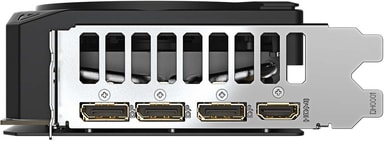 Inkluderar tre DisplayPort 2.1b-anslutningar och en HDMI 2.1b-port, med stöd för en maximal upplösning på 7680 x 4320.