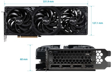 Rekommenderad tillgänglig strömförsörjning är 750W och kortet använder en 1x 12VHPWR-strömkontakt.