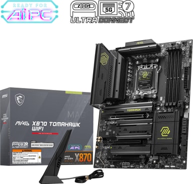 Släpp lös den fulla potentialen hos din gamingrigg med MSI MAG X870 TOMAHAWK WIFI moderkort, ett kraftpaket som är designat för att tänja på gränserna för spelprestanda. Detta moderkort är konstruerat för de senaste processorerna i AMD Ryzen 9000-serien med höghastighetsanslutning och robust kraftleverans. Med sin militärinspirerade design står MAG X870 TOMAHAWK WIFI som en symbol för hållbarhet och pålitlighet, redo att ta itu med de mest krävande spelen och apparna.