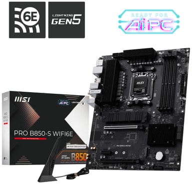 MSI PRO B850-S WIFI6E-moderkort med 2.5G LAN, PCIe 5.0 och DDR5-stöd levererar sömlös uppkoppling, imponerande 4K-grafik och studiokvalitativt ljud, utvecklat för AMD Ryzen™ 9000-seriens processorer i professionella- och gamingdatorer.Läs mer om produkten