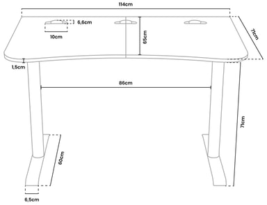 Detta kompakta skrivbord har en ytbredd på 114 cm med fullt ytstöd, vilket ger ett större utrymme för musrörelser.