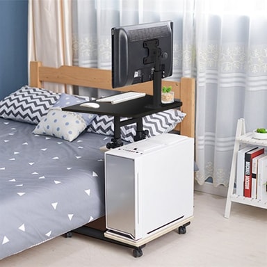 Med detta skrivbord kan du arbeta, använda din stationära dator eller laptop till nöjen var du vill i hemmet. Skrivbordet har även ett inbyggt skärmfäste som kan roteras 360 grader.