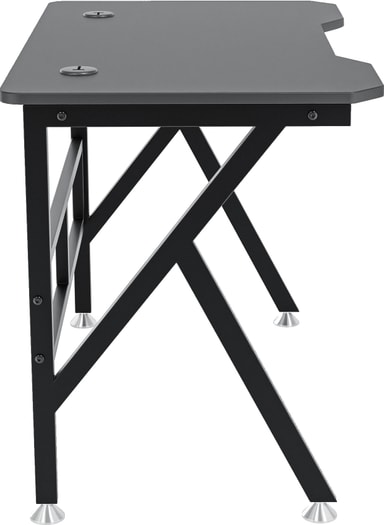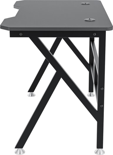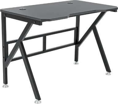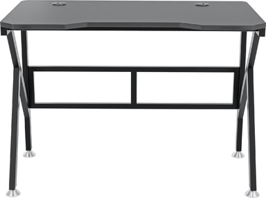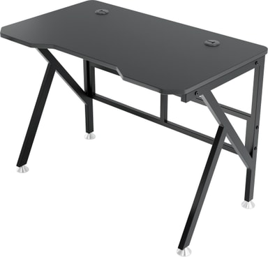 Skrivbordet har en robust svart stålram för att säkerställa stabilitet och bra stöd för din spelutrustning. Med en bredd på 100 cm och ett djup på 60 cm är bordet ett kompakt men praktiskt stöd för dina enheter. Bordet klarar en vikt på upp till 70 kg och den vackra kolfiberskivan med svarta kanter ger ditt rum en ny stil.