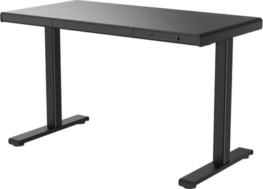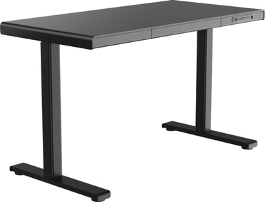 Uppgradera ditt kontor med slimmade Zen Glide 120 skrivbord som har en låda, motor med lågt ljud, härdat glas, en filtbeklädd kabelbox och justerbar höjd från 70 cm till 119 cm via kontrollpanelen.